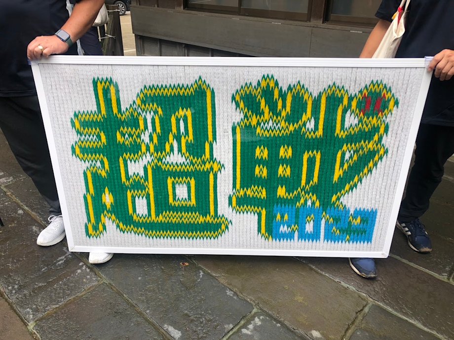 部員の皆さんへ”超戦”とデザインされた千羽鶴を贈呈致しました。