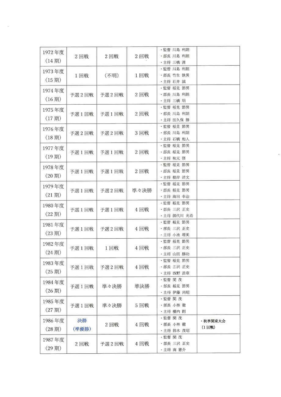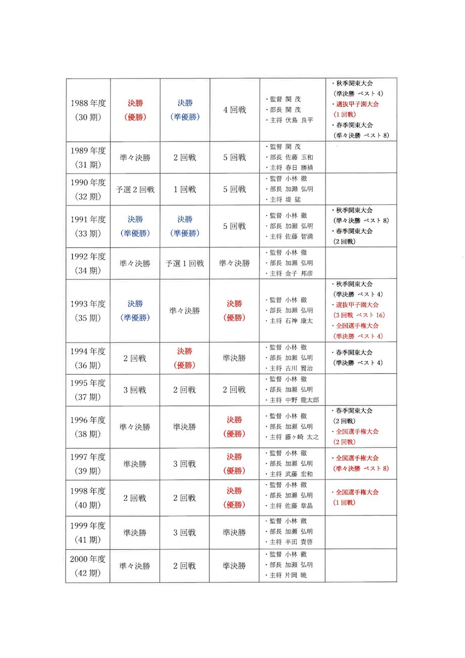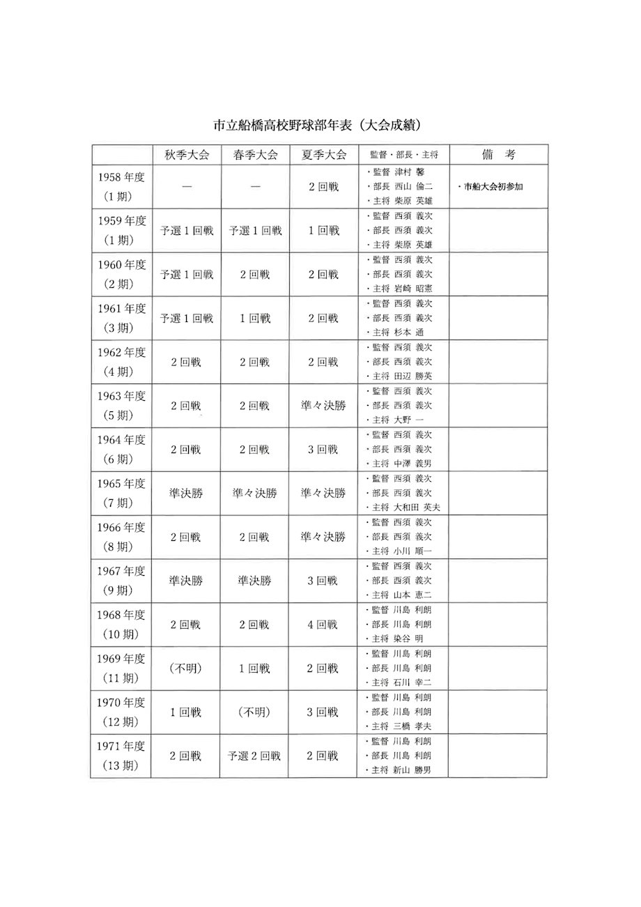 野球部の歴史 年表