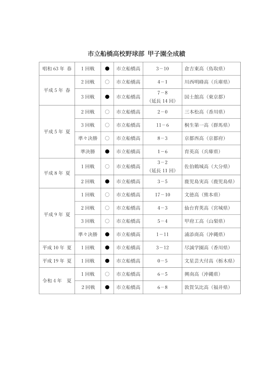 市立船橋高校野球部 甲子園全成績